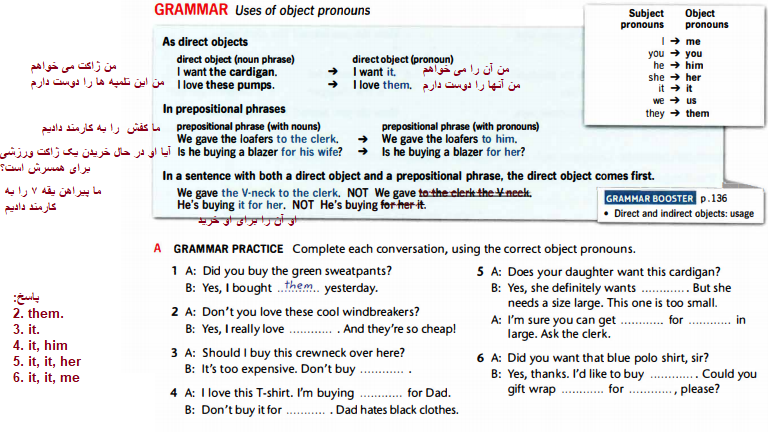 گرامر: در این بخش ضمایر مفعولی آمده است.